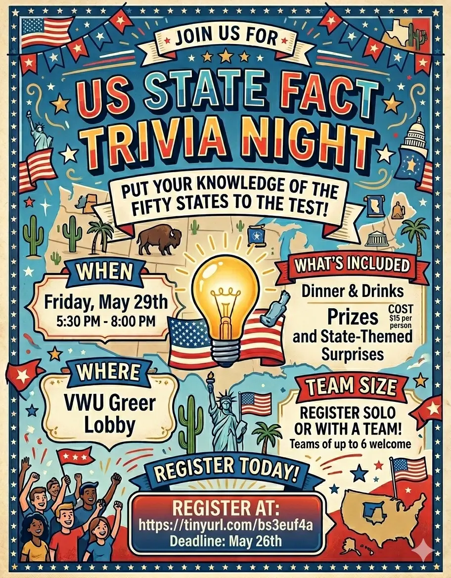 A fun, low-pressure evening of trivia with a U.S. twist. Come test your knowledge, connect with others, and enjoy a relaxed night of community and friendly competition.